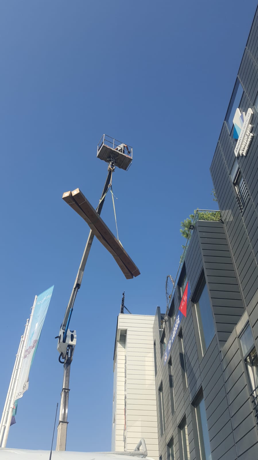 Imaginile au fost surprinse în timpul lucrărilor de montaj.